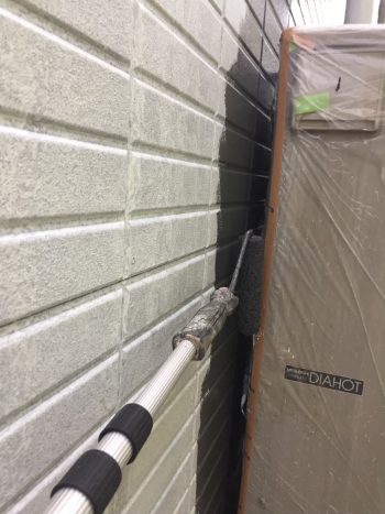 透明な下塗り材なので色が少し濃くなっている所が下塗りを塗った所です!
